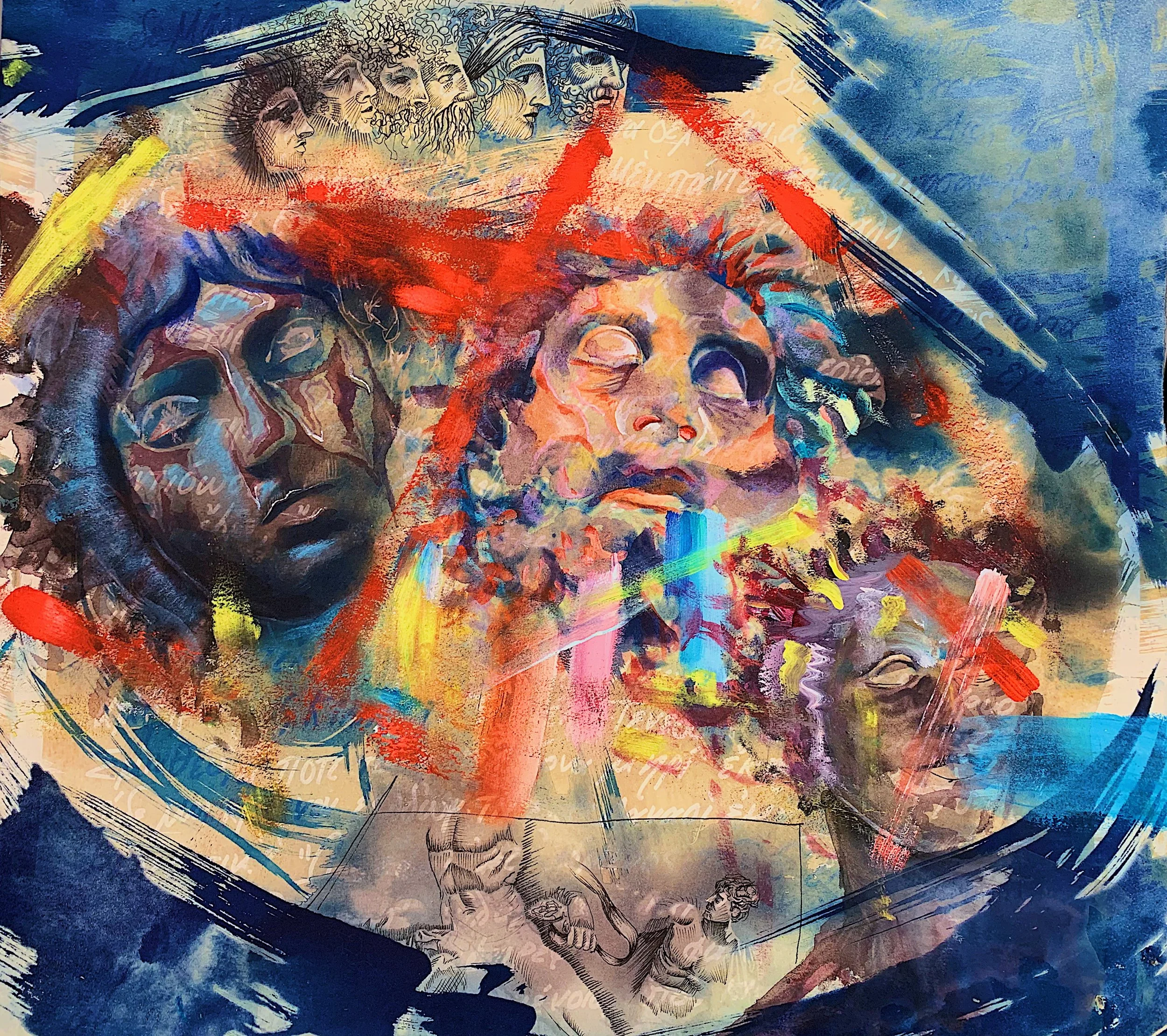 Modern Antiquity. Acrylic and cyanotype on rag paper, 18x18”. 2019.