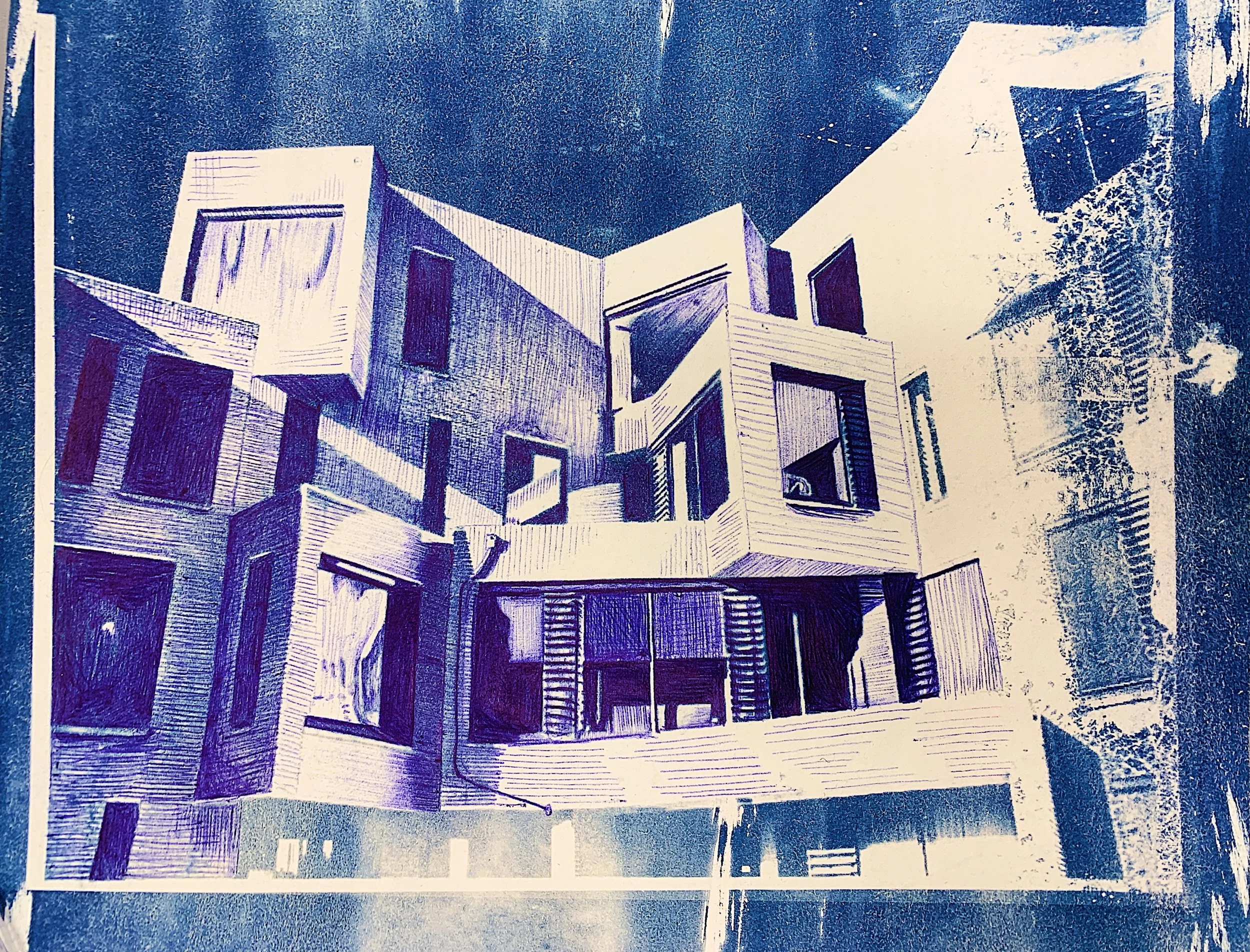 Untitled. Ballpoint and cyanotype on rag paper, 12x9”. 2019.